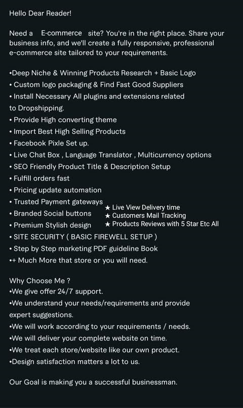 Build website, Store Design, Automated Dropshipping Store, Ecommerce Store, Reselling Shop, One Product Store, Pre Built Store